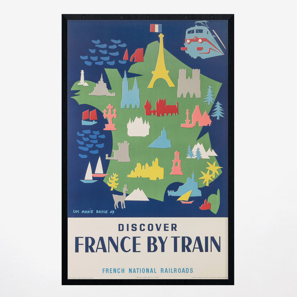 Vintage 1954 Discover France By Train Poster (Linen-Backed)